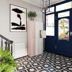 - Single door lockers include an internal shelf and fixed hook/coat rail for multiple hangers.