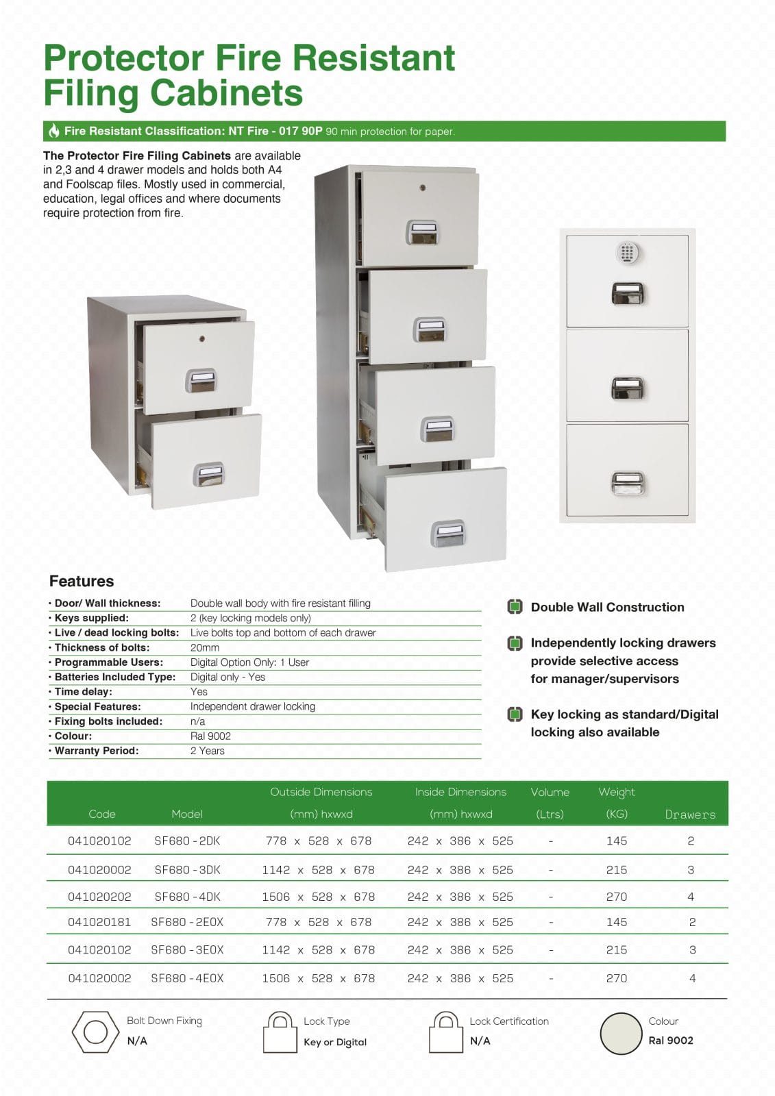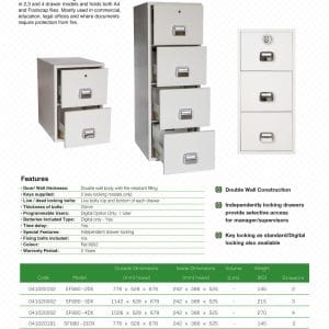 Fire resistant products are made to ensure that the inside temperature of the safe or cabinet does not exceed the temperature at which paper or data will be damaged. At a temperature of 175°C paper can be damaged or even perish. The critical limit for magnetic data is about 50°C, however digital media such as CD’s/DVD’s/USB drives is higher, similar to paper. Data safes also provide protection against moisture, dust and soot particles. There are several fire resistant safes, cabinets and data boxes available, which provide perfect protection against fire and theft for your documents and data.